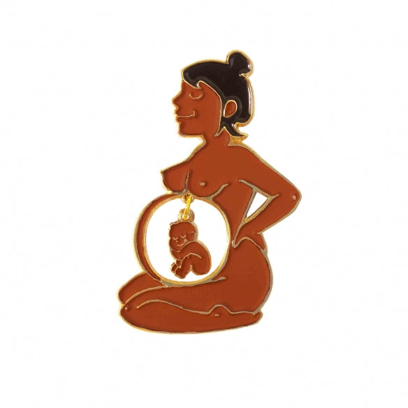Adorable pin's jeune maman qui couve son petit bébé avec fierté.