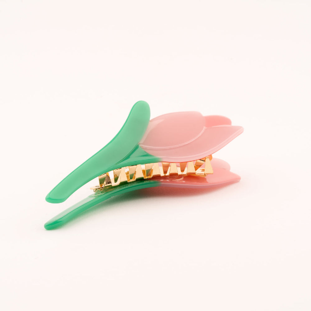 Une élégante tulipe rose pour donner de la poésie et de la douceur à vos coiffures faites à la va-vite. De quoi faire pâlir de jalousie toutes les abeilles du quartier.