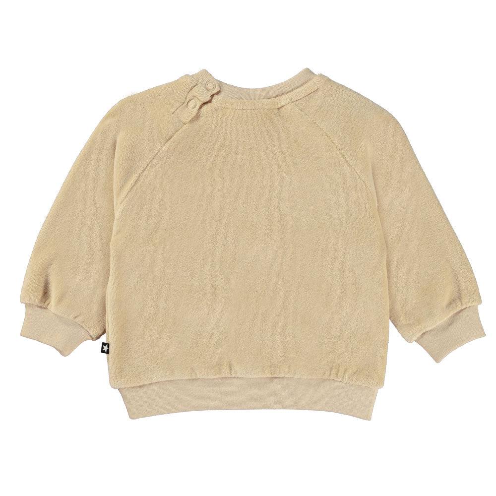 Ce sweat-shirt est composé de 100% de coton et possède un col rond avec un bord-côte, des manches raglan, un bord-côte aux manches et en bas et une fermeture facile à bouton-pression au niveau du cou.