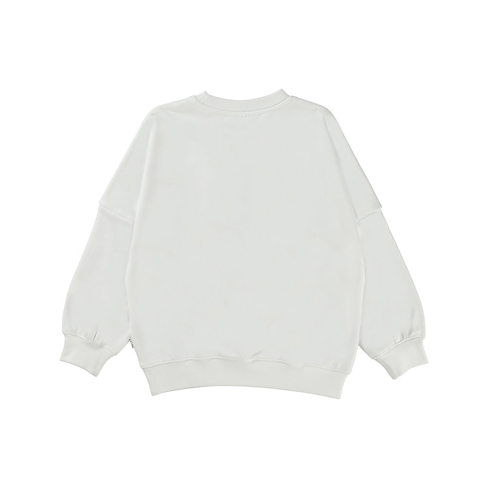 Sweat blanc avec grand smiley brodé au fil doré.