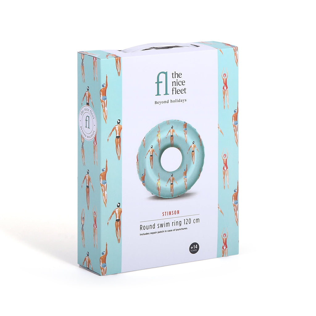 Grande bouée ronde gonflable de 1,2 m de diamètre,aux motifs de nageuses & nageurs rétro rappelant l'atmosphère de Stinson, en Californie.
