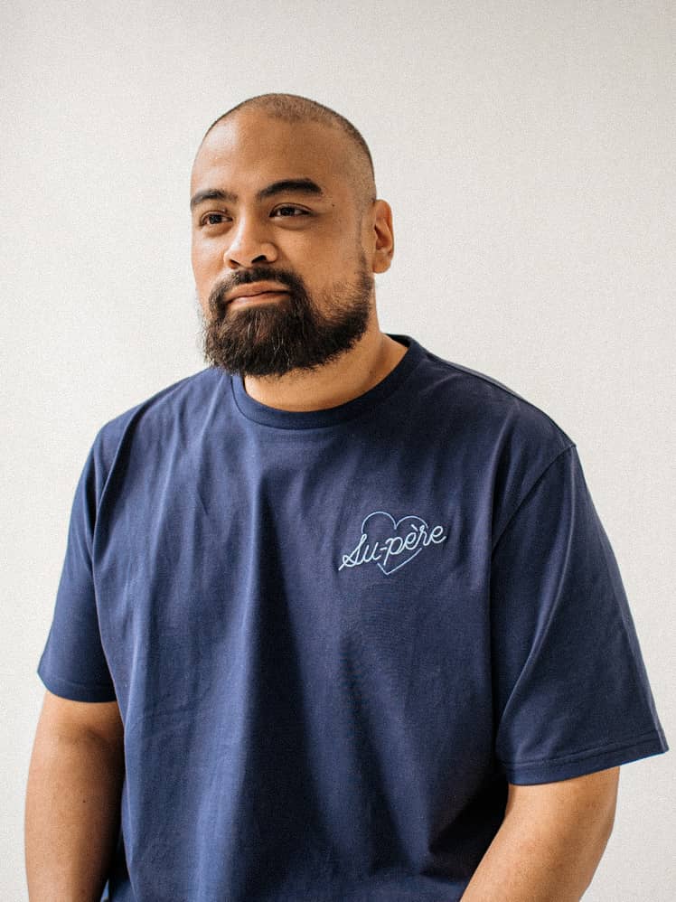 T-shirt en jersey épais et confortable. Broderie "su-père" sur le cœur